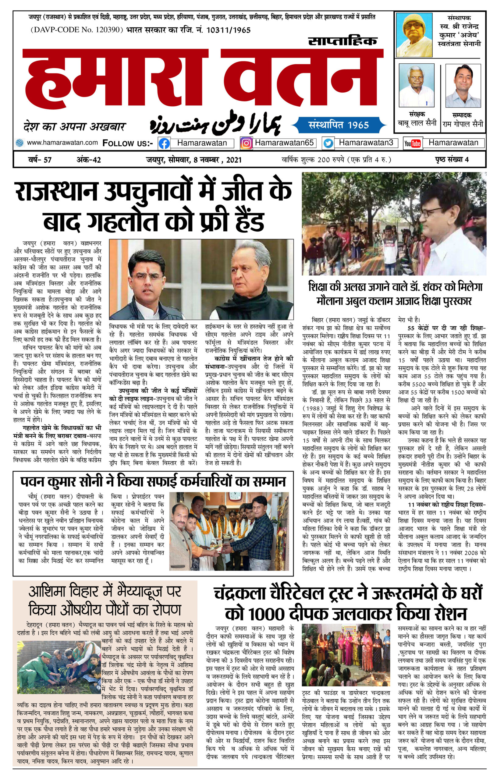 हमारा वतन न्यूज़ पेपर का 8 नवम्बर 2021 का अंक